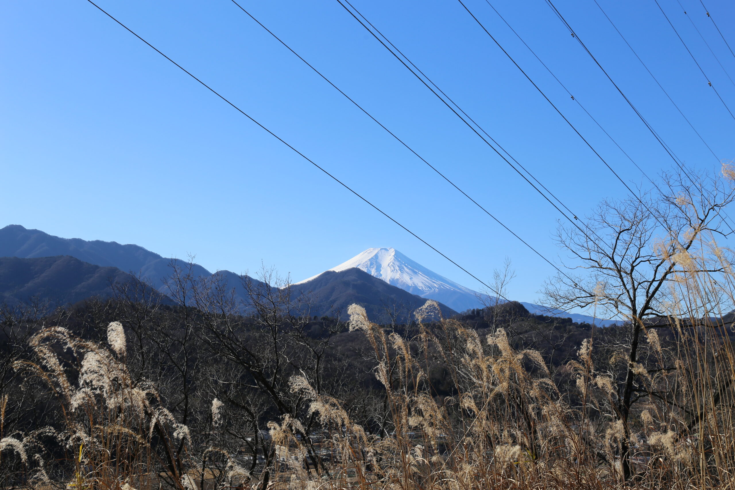 祈りの場へ向かう道の途中で、暮らす町と山々の風景と信仰の山、富士山を見渡す―