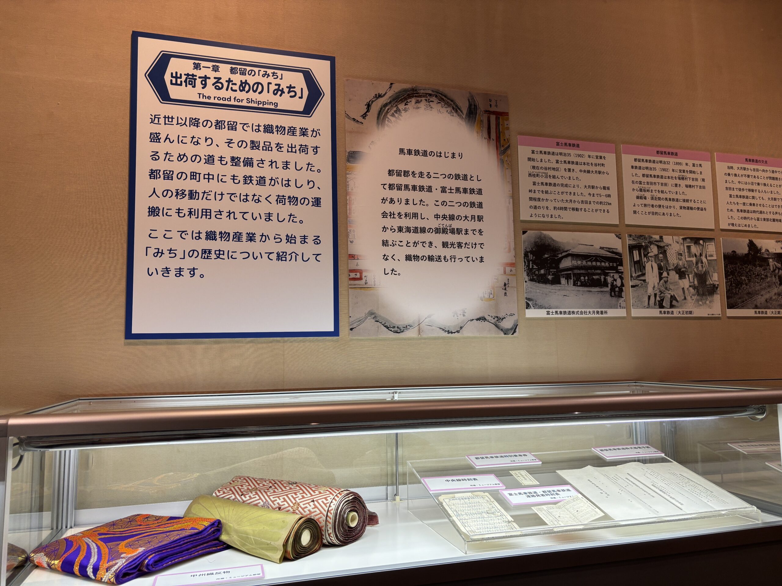 馬車鉄道の登場によって、郡内織はそれまでよりも広い範囲へ運ばれるようになり、都留の産業にも大きな影響を与えたのです。